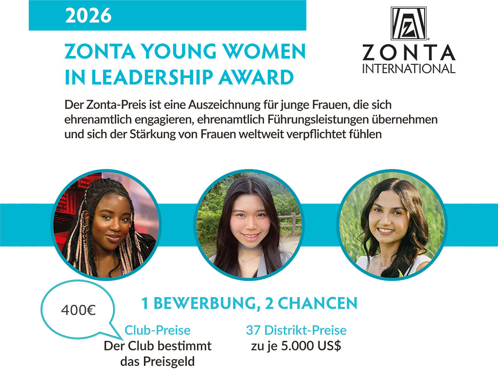 Der ZONTA-Club Aumühle-Sachsenwald e. V. ermutigt alle jungen Frauen, die Verantwortung übernehmen und ihre Stimme für andere einsetzen, sich jetzt zu bewerben. Gemeinsam stärken wir eine neue Generation von Leaderinnen.